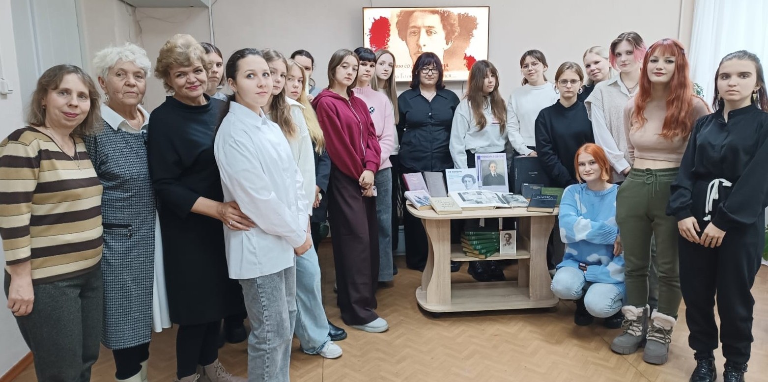 С 17 по 23 ноября в Кузбассе проходит ежегодная Неделя молодёжной книги под названием «Молодое поколение Великой России», посвящённая 80-летию Победы в Великой Отечественной войне. Многочисленные библиотечные мероприятия будут посвящены произведениям, которые адресованы будущему нашей страны, активным и дерзким, талантливым и активным! Поговорим о современных авторах и не забудем о классической литературе. В рамках Недели библиотеки Кузбасса объединятся в сетевой акции «Классика. Перезагрузка». Её цель – заново открыть молодому поколению наследие великих русских писателей, чьи юбилеи пришлись на 2025 год. Творчество Александра Блока, Сергея Есенина, Ольги Берггольц, Константина Симонова, Михаила Шолохова, Маргариты Алигер по-прежнему задевает за живое, заставляет думать и чувствовать. Через их произведения молодые люди узнают историю страны, почувствуют связь с ней, ощутят себя частью великой культуры. 19 ноября в Центральной библиотеке студенты и члены Литературной студии им. В. Д. Федорова стали участниками литературно-исторической гостиной «Александр Блок и его время» по проекту читального зала «Молодежь читает классику».